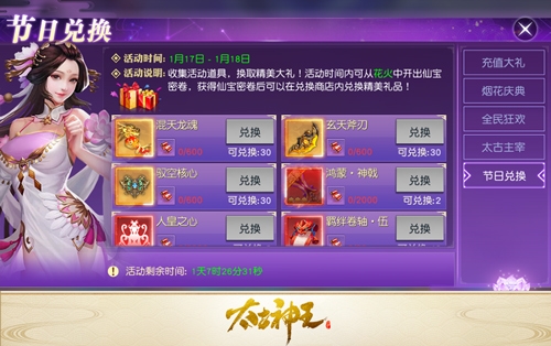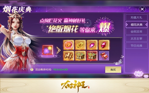 《太古神王》春节系列活动即将来袭,今日仙域盛会抢先送福利,兽皇玺选择宝箱首次登场教你御兽绝技!五大活动全服同享,快来燃放烟花赢取神秘大奖。