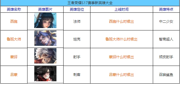 王者荣耀S17赛季有哪些新英雄上线你,那么现在要给你们分享带来的就是王者荣耀S17新英雄大全的内容。小伙伴们你们是不是也都是超级期待的呢?那么现在就跟随一起来看一下吧!
