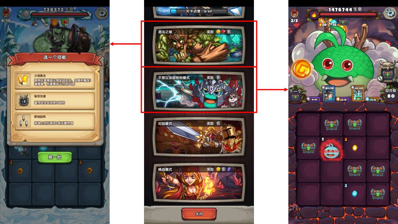 这次经过一个季度的努力,我们拥有了混沌之塔和不思议迷宫特别模式两大新玩法!相信不管你是冒险新人还是屠龙老手,这两大玩法都一定能给你带来前所未见的轻松快乐和爽感~ 点选主界面中“模式选择”即可进入两个全新玩法~通过新玩法还可以获取自己想要的指定卡牌哦~妈妈再也不担心我主线打腻味啦!