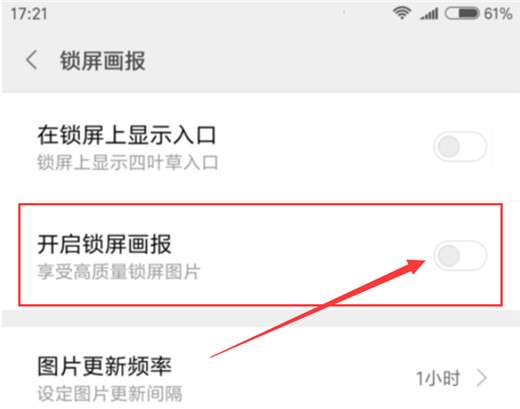 4.最后关闭开启锁屏画报选项后面的开关即可。