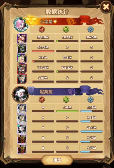 当时打完涌潮林地后10个普通卷抽到了女妖,刚好背包里有女妖,就把女妖升到了白1星。之后我去刷浩劫之地,运气好,把整个副本全通了。(2个光盾和小羊很简单)图是昨天截的