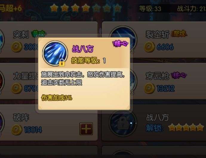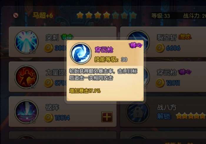 马超需要暴击率,点满穿云枪,增加暴击率的一个技能