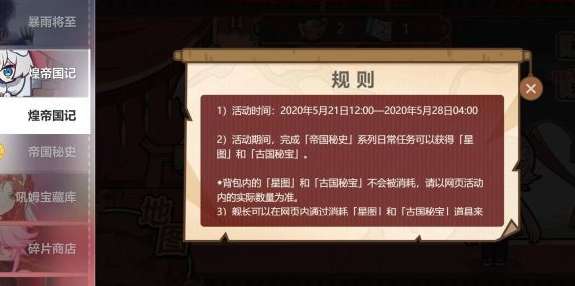 煌帝国记 网页活动[煌帝国记]网页活动将在5月28日 04:00结束,请及时完成任务获取活动奖励。