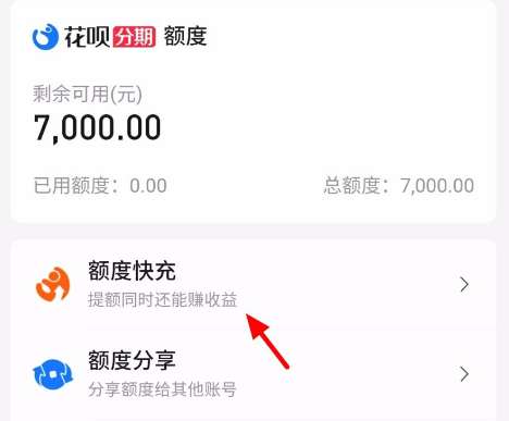 5、在我的额度页面,就可以看到额度快充的入口。