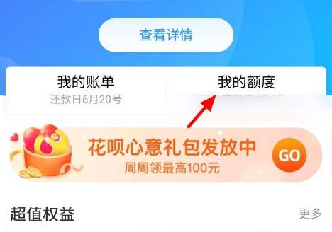 4、在花呗页面,点击我的额度;