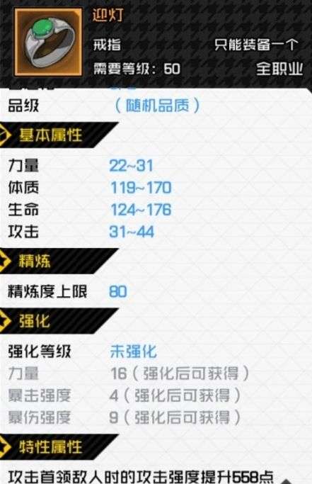 《迎灯》/戒指适合所有角色使用。首领伤害增加5.58%攻强,十分稳定。