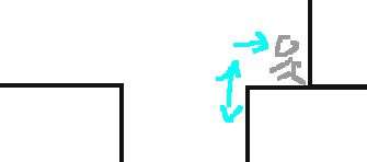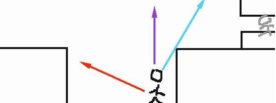 一直慢慢瞄着右边墙角的地方(蓝线),大部分的玩家是没有这样的意识的。