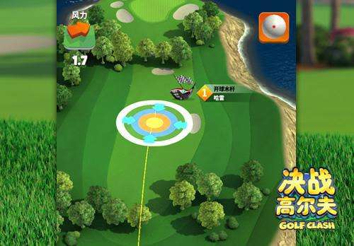不同于足球、篮球这类体育竞技游戏,《决战高尔夫》的整体操作非常简单,玩家只需拖动并放开高尔夫球,便能完成击球操作。另外,每次击球时,屏幕中还会出现指针盘或箭头,当指针或箭头摆动到中心位置时放开高尔夫球,就能打出完美。