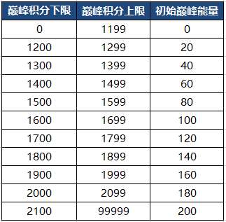 赛季更新时的继承规则:跨赛季时巅峰能量清空,根据上赛季结算时的巅峰积分,在新赛季会继承不同数量的初始巅峰能量