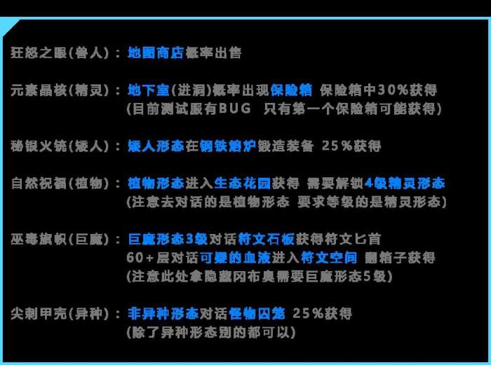 普通装备在商店购买 或者切换到矮人形态 在熔炉锻造