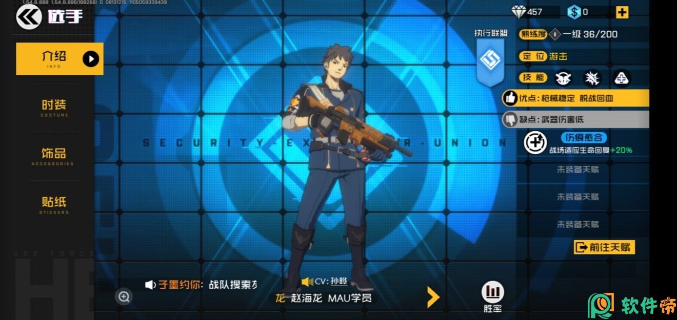 玩家们在操作赵海龙时,切记千万不要站桩输出,因为这是一名机动性非常强的角色,需要经常走位移动,就如同他的定位,游击作战。无论是近战还是远攻,该角色都是可圈可点的,而且其自身还有非常BUG的回复能力,所以说是一位非常全面性的选手。