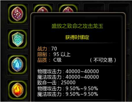 盛放之致命之攻击龙玉,额外增加了致命一击属性,也就是常说的暴击几率。