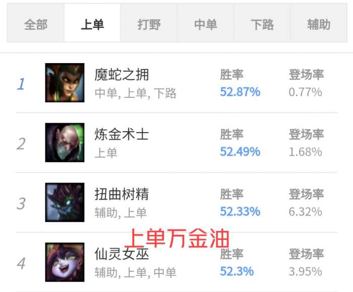 在韩服当中上单露露的胜率超高,因为自身的手长的优势和前期的Q技能的远距离伤害消耗都让露露成为上单版本一姐。(跟之前的上单奶妈一样)也因为打团时自己的远超辅助的装备优势也能在团战之中更好的保护C位英雄,所以设计师在这次的版本更新当中降低了Q技能的伤害来降低她的线上能力。