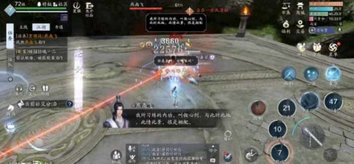 燕南飞蓄力后在自身四周出现8道剑气,随后向四周射出。该技能伤害较高,各位可以站在两道剑气之间的空隙,或者使用三段跳来躲避攻击。注意,八方剑气会连续释放2次,一定要小心第二次的剑气、