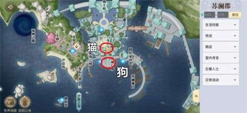 天谕手游苏澜城猫和狗位置一览