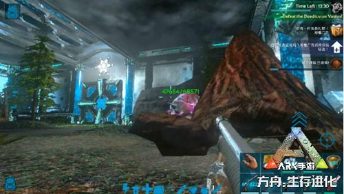 星尾兽原本是《方舟:生存进化》手游很强大的采集生物,它能够帮助玩家采集大量的石头资源,而作为BOSS的星尾兽的一大技能就是会不断的翻滚,摧毁前进路线上的木头、石头,并且还会用尾巴攻击敌人。不过星尾兽没有远程攻击技能,大家可以围绕着地图右下角处的大树,使用饶树身法,在躲避星尾兽的攻击时用枪械反击它,直到将其给风筝死。