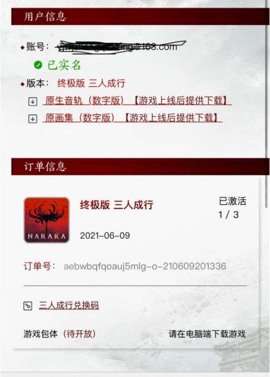 【三人成行版】购买后将激活已登录账号的游戏资格,并获得两枚可以赠予友人的激活码。激活码可以在官网——个人中心——激活码兑换,使用激活码来激活游戏资格和对应档位奖励。