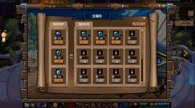 进入交易所,购买3个特产,因为只有1搜探索飞艇,只有3个仓库容量。