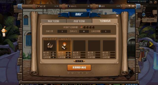没有耐久度需要进行队伍的编制,此时如果银币数量达到6000以上时,可以选择再购入一艘飞艇。