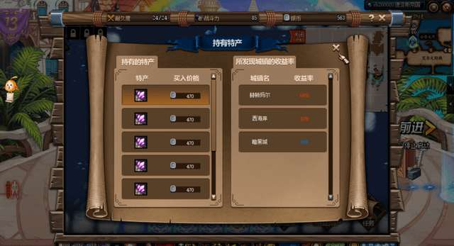 购买特产后,要点击【所持有特产】看看哪一个城镇的利润高,就去哪一个城镇交易。
