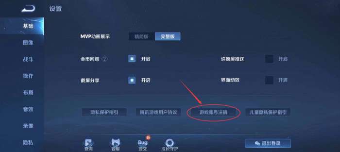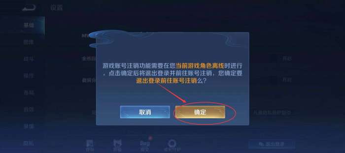 2、然后进入(基础设置),也就是第一个设置的选项,拉到最下面之后,我们可以看到(游戏账号注销)这几个字,点击然后确认按照提示进行注销操作就可以了。