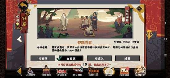 无悔华夏渔樵问答4.16答案分享 谁说降齐王遭受烹杀的汉军谋臣答案是什么[图文]
