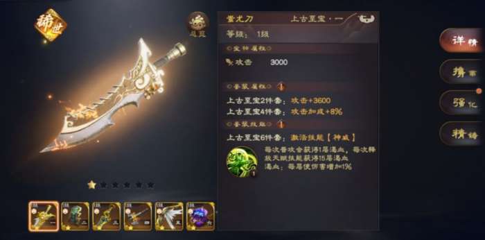 蚩尤刀、刑天干、轩辕剑、盘古斧、后羿弓、大禹息壤,凑齐六件宝物后,激发“神威”技能,将增加有效伤害、攻速,神威技能的buff配合赵云被动1技能快速刷新大招,使赵云CD冷却时间短而且还有高输出,能迅速收割后排武将。