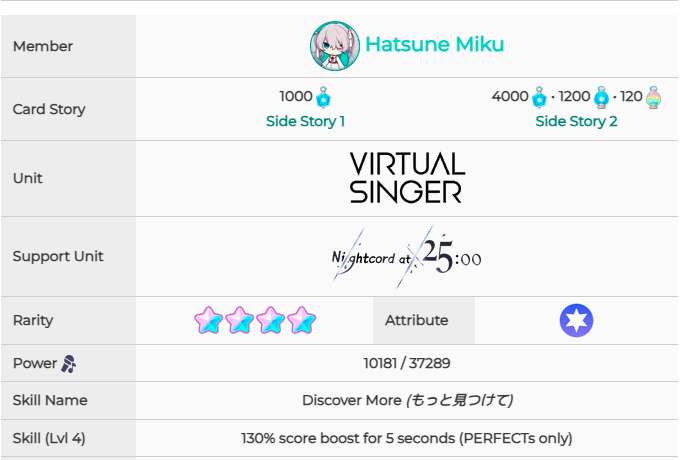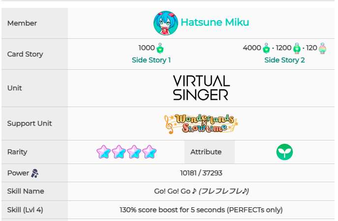 《初音未来:缤纷舞台》预抽卡四星卡面和技能一览:
