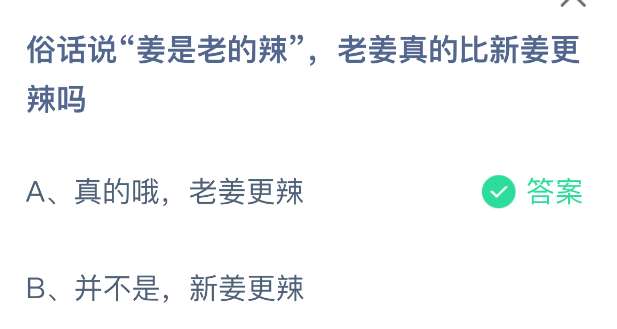 以上就是俗话说“姜是老的辣”,老姜真的比新姜更辣吗,支付宝蚂蚁庄园2025年12月30日答案最新,更多精彩内容,请点击关注pk游戏网更新!