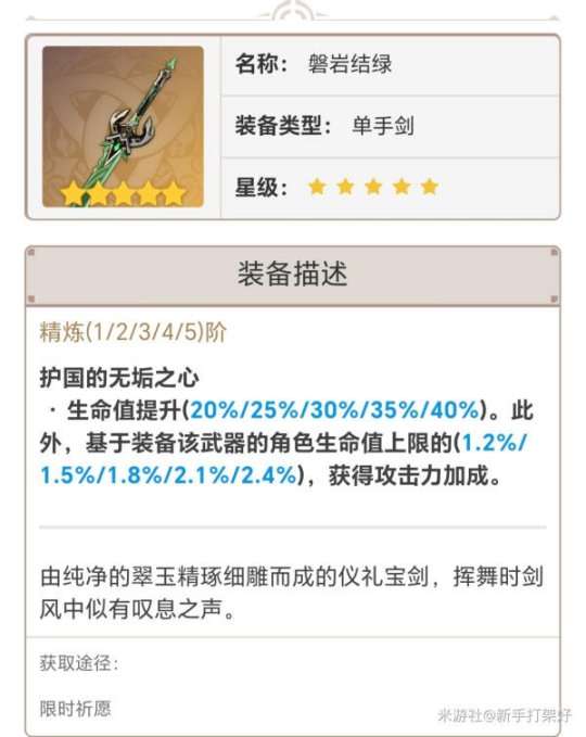 磐岩结绿 完全是芙宁娜专武,暴击率44.1%与生命加成非常适配芙宁娜