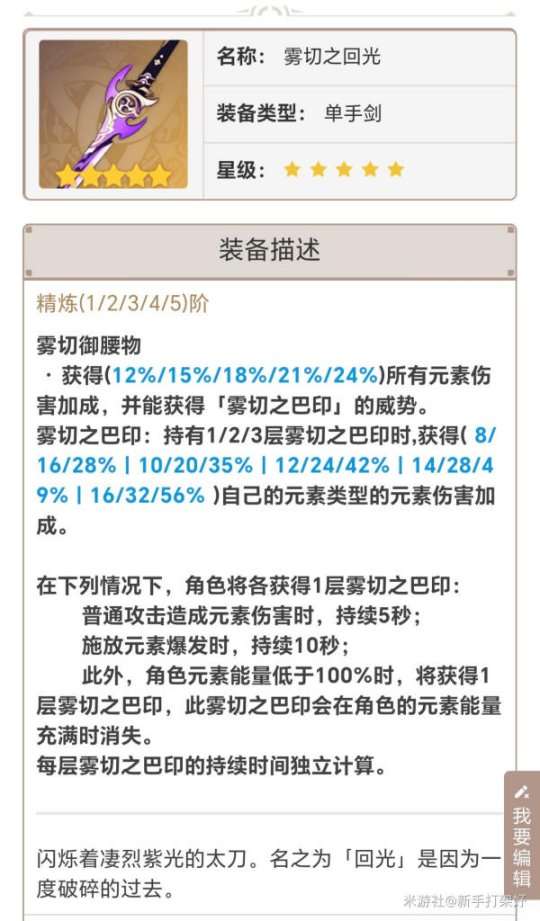雾切之回光 提高元素伤害与暴击伤害攻击高