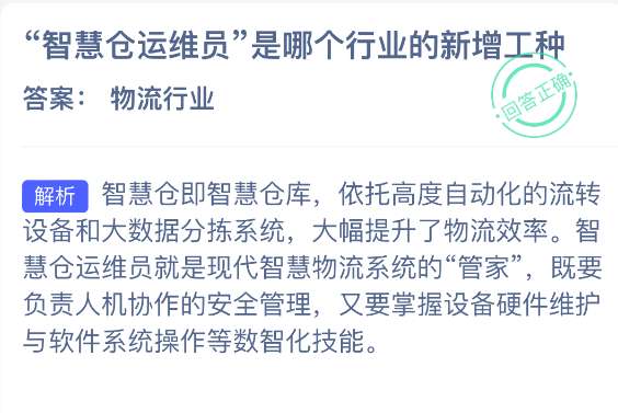 以上就是“智慧仓运维员”是哪个行业的新增工种?支付宝蚂蚁新村最新答案2025年12月3日,更多精彩内容,请点击关注pk游戏网更新!