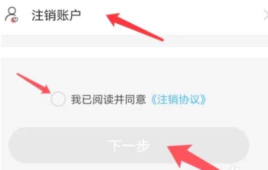 在打开的页面中,选择最下方的【注销账户】选项,点击并进入,在跳转的页面中,勾选【我已阅读并同意】,最后点击【下一步】即可。