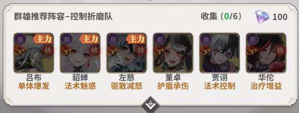 群雄阵营角色玩儿起来的话,其实各种能力都带有控制的时候,敌人是一直处于一个被动状态的,如果要组成这样的一个阵容大家就要注意,其中所用成员最好是用吕布来承担单体爆发,然后加上貂蝉、左慈,形成3个人的主力成员,另外还有3个位置大家可以放的是董卓、贾诩、华佗,搭配整体阵容成功以后,其中吕布就放在单体的输出位置上面,用作核心自身能力,可以通过无双带来单体爆发,进行攻击的时候,如果有怒气加成,她的伤害还可以带来10%基础提升,另外有更多层次增加的时候,有200%的输出提升是能够达到她最大的一个输出数值,到后期如果再进行了四次连续普攻之后,目前还可以对敌人血量比较低的三个敌人造成群伤,这里的群伤每一次都是百分百的真实伤害,所以在达到11星的时候,她的输出能力是可以得到非常高的一个百分比。