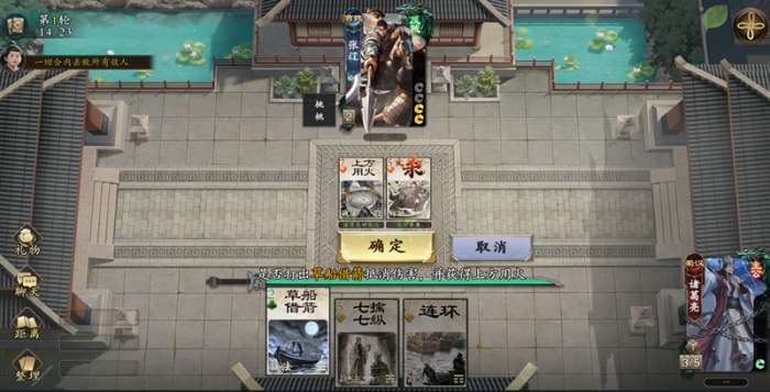 3、火属性伤害传递至己方时,不用七擒七纵,使用“草船借箭”,获得1张上方用火。