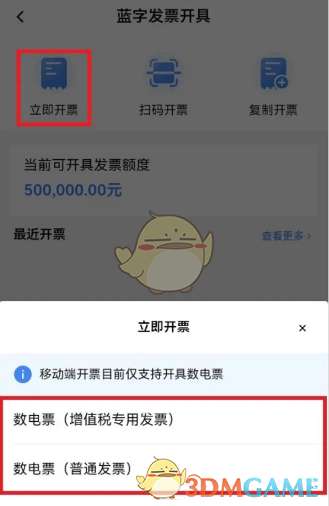 3、移动端暂不支持开具特定业务发票;增值税专用发票不允许开具免税、不征税、零税率的发票。
