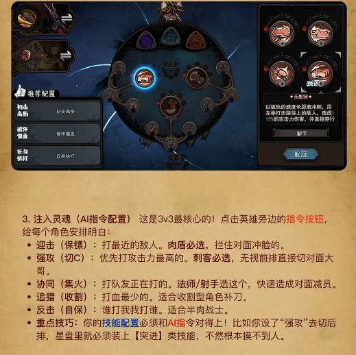 1、看人下菜碟(换人策略)看到对面是高爆发刺客,你还上个脆皮法师?找死啊!一定要看一眼对手阵容,灵活切换出战英雄。用克制对面的职业去打。