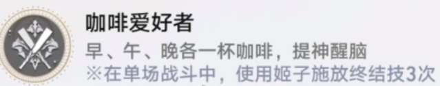 姬子的角色专属成就是“咖啡爱好者”,要求在单场战斗中使用姬子施放终结技三次。