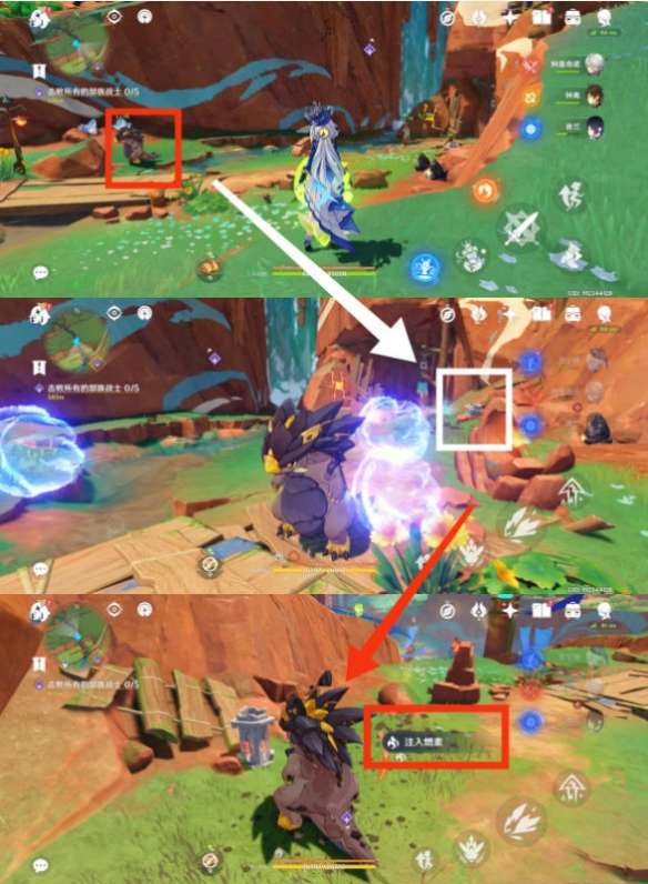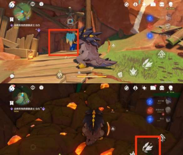 在这里我们变成小恐龙,钻进地下用技能去袭击在地里的柱子,然后我们往柱子里注入燃素,开启石门跳下去