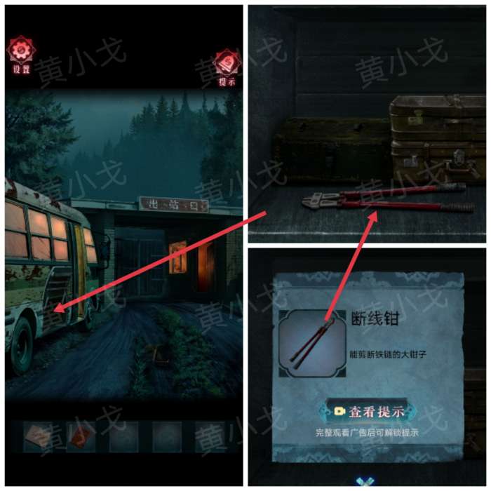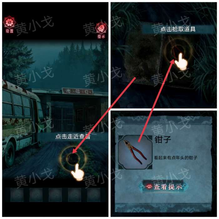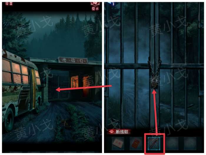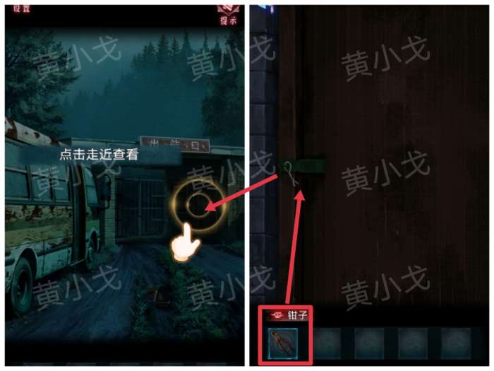 2.点击值班室的门,用【钳子】剪断门闩上的金属丝,打开门