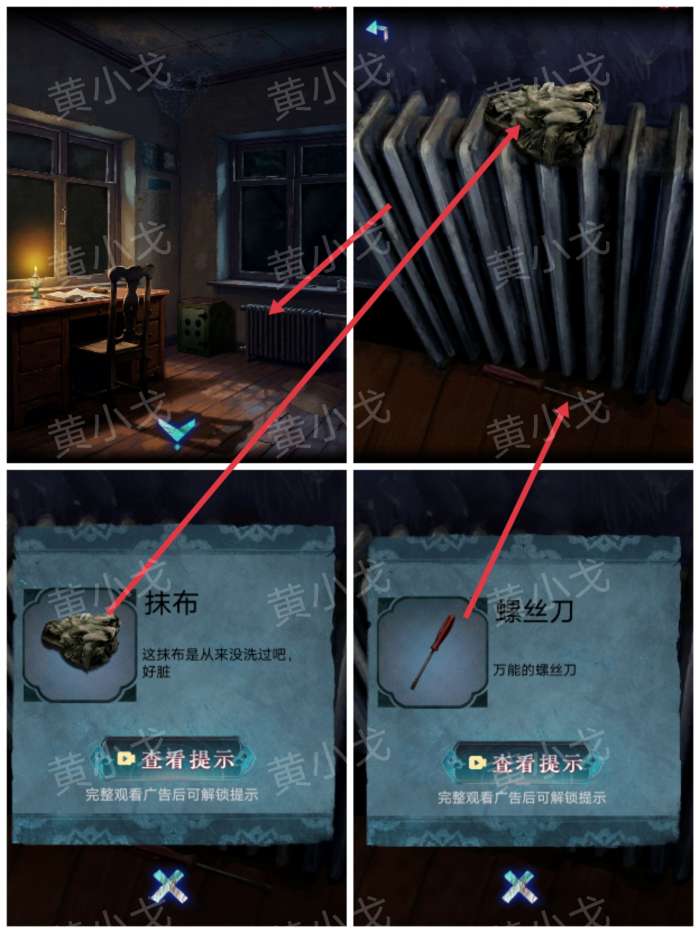7.点击护杆,获得【抹布】和【螺丝刀】