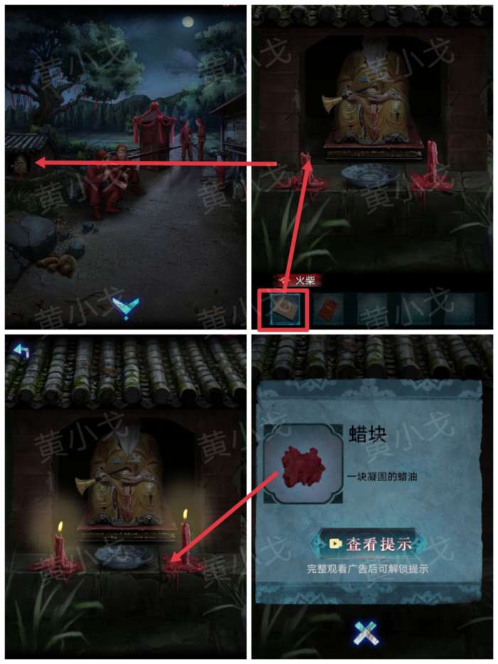 19.点击土地公公庙,用【火柴】点燃蜡烛,获得【蜡块】