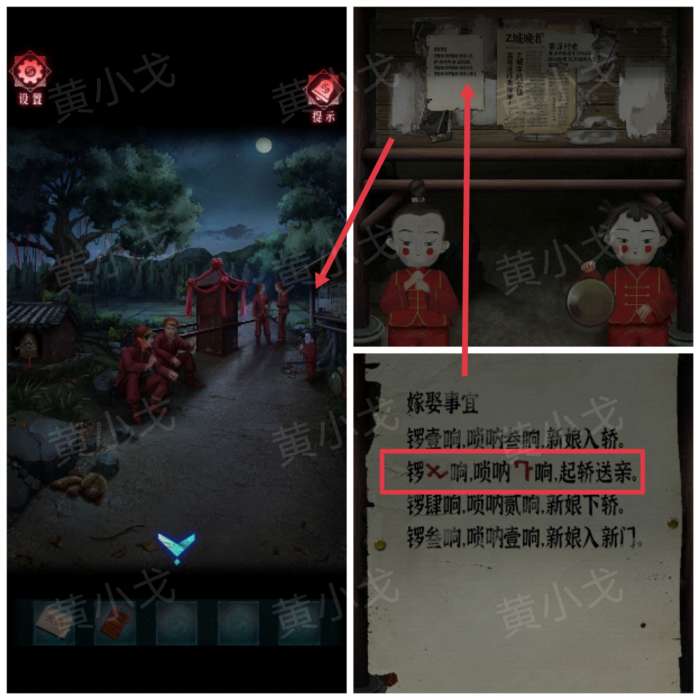 25.根据轿帘上的符号等式和嫁娶事宜上的线索,按顺序和次数点击锣和唢呐