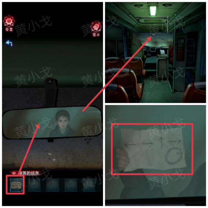 27.点击大巴车的内后视镜,拿出【掉落的纸条】,获得线索