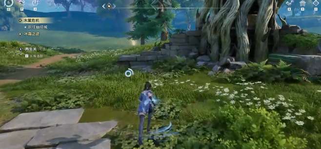 玩家可以先来到速回营地的下面。通过对话之后得知要收集两个石板,第一个石板就在前面的石柱下方。来到石柱的下面,用钩锁拉上去可以拿到第二块石板,还有一个宝箱。之后和区域里面的鸟对话就可以开启试炼,等待标记终点朝着前面前进。解密的核心就是按照顺序去开启机关,先开启中间的机关,最后激活左侧的机关,等到把所有的机关激活之后,那自然就可以解锁后续的区域。