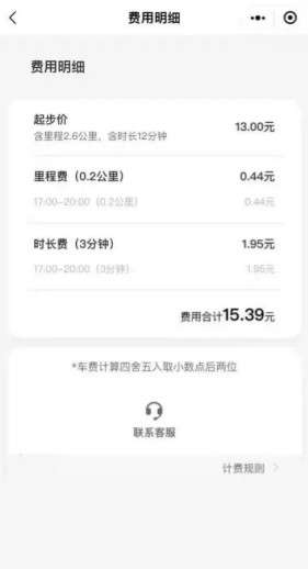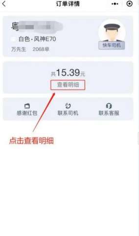 4、在”费用明细“页面可以查看该订单的起步价、里程费、时长费等订单的费用明细信息。