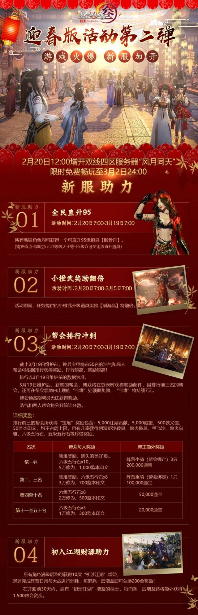新服加开:2月20日12:00增开双线四区服务器“风月同天”