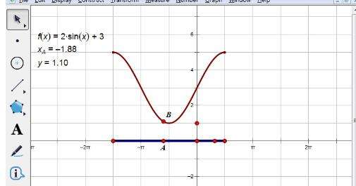 选中x轴上的点A和点B,执行“构造”——“轨迹”命令即可,同样的方法可做好多函数在某些区间上的函数图像。