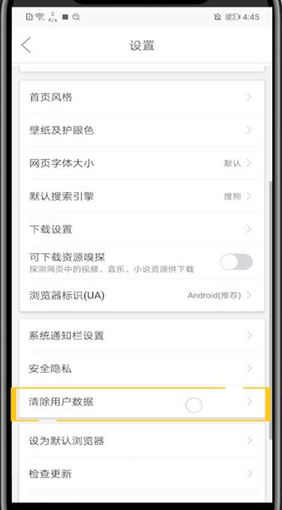4、点击清除用户数据