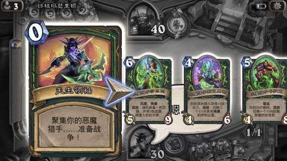 我们开始游戏起手留2费的被禁锢的魔候,我们开局会有四个恶魔猎手洗进我们的牌库。